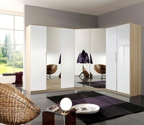 Eckkleiderschrank In Hochglanz Weiss Eiche Sagerau Eck