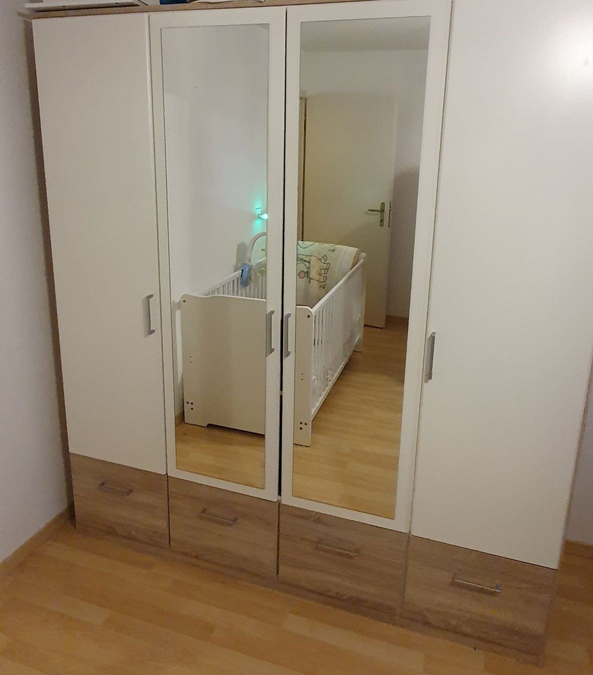Verkaufe weissen gebrauchten, aber gut erhaltenen Kleiderschrank.